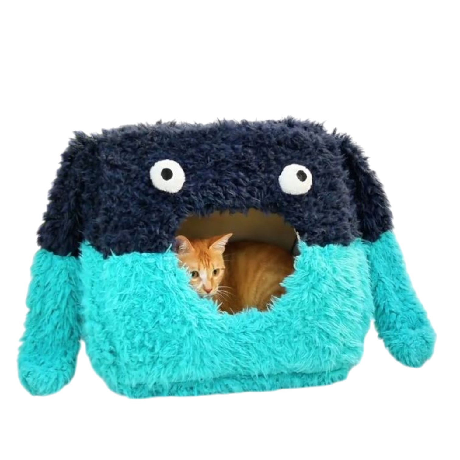 Textura pufoasa si catifelata a materialului exterior ofera o senzatie placuta la atingere, iar designul vesel cu „ochisori” si „urechi” din plus creeaza un efect vizual adorabil.