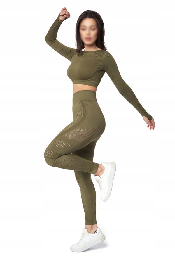 Compleu Fitness 2 piese, cu respirabilitate sporita, Verde army - L