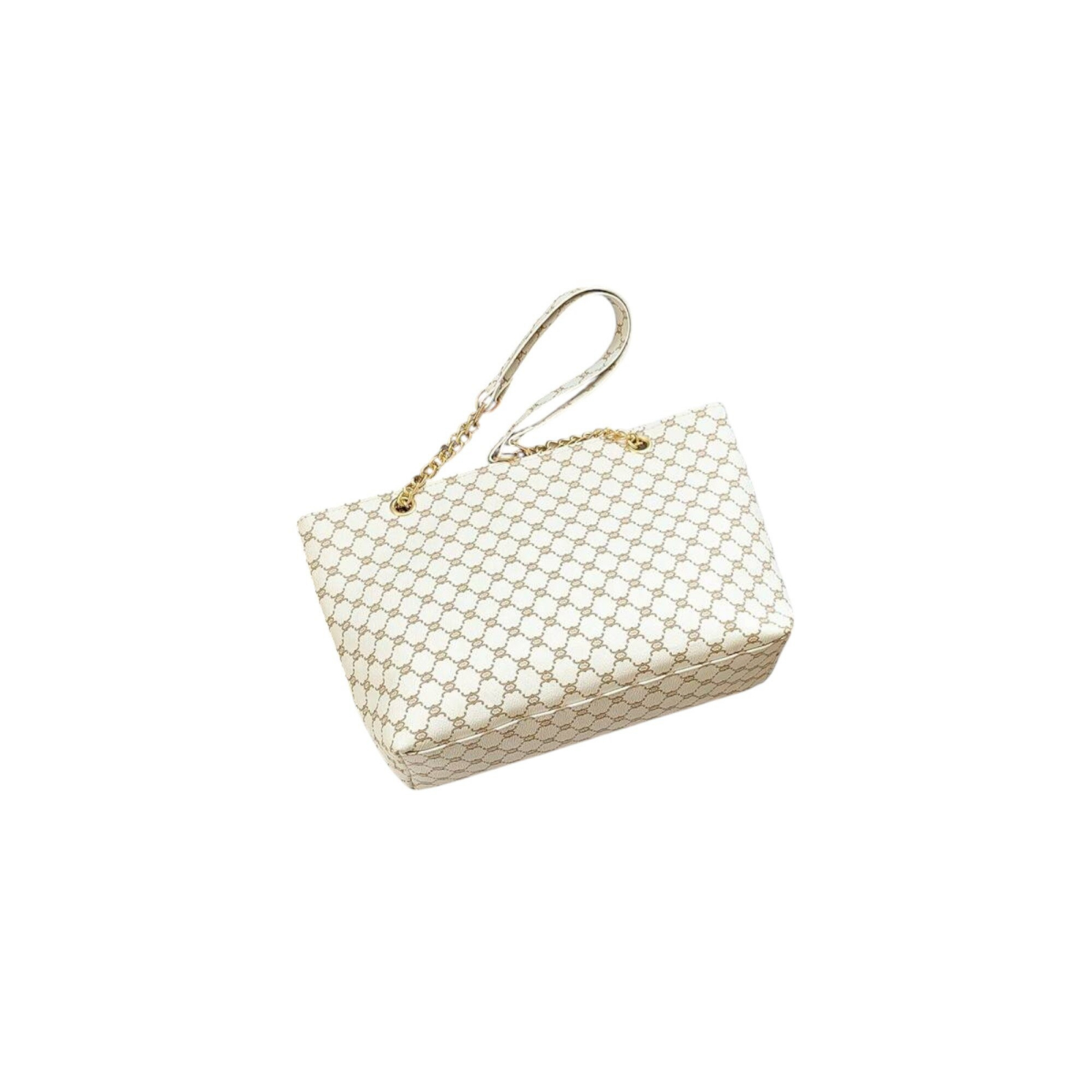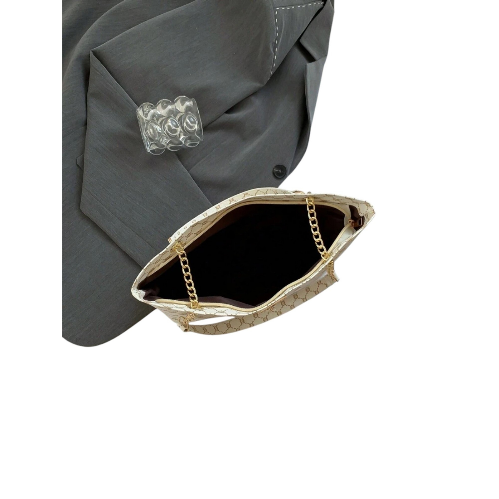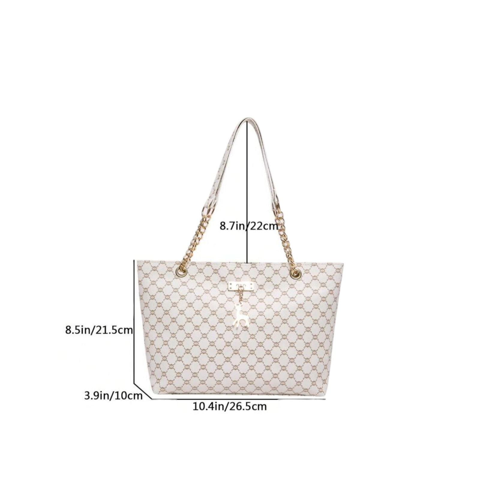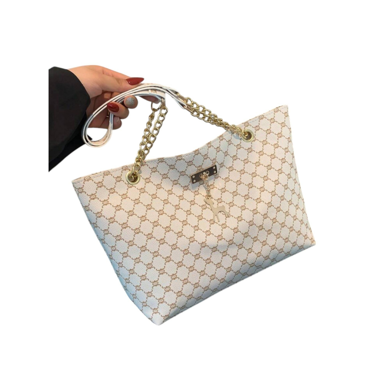 Aceasta geanta tote pentru femei impresioneaza prin imprimeul sau geometric clasic, care adauga o nota de eleganta si distinctie. Fabricata din piele ecologica de inalta calitate, este decorata cu lanturi aurii sofisticate, completand un design modern si versatil. Cu o capacitate mare, geanta este ideala pentru a transporta laptopul, carti sau alte obiecte esentiale, fiind perfecta pentru scoala, facultate sau birou. Inchiderea cu fermoar ofera siguranta, iar designul atemporal o face potrivita pentru orice ocazie, de la intalniri de afaceri pana la iesiri casual. Alege aceasta geanta pentru un look elegant si functional!