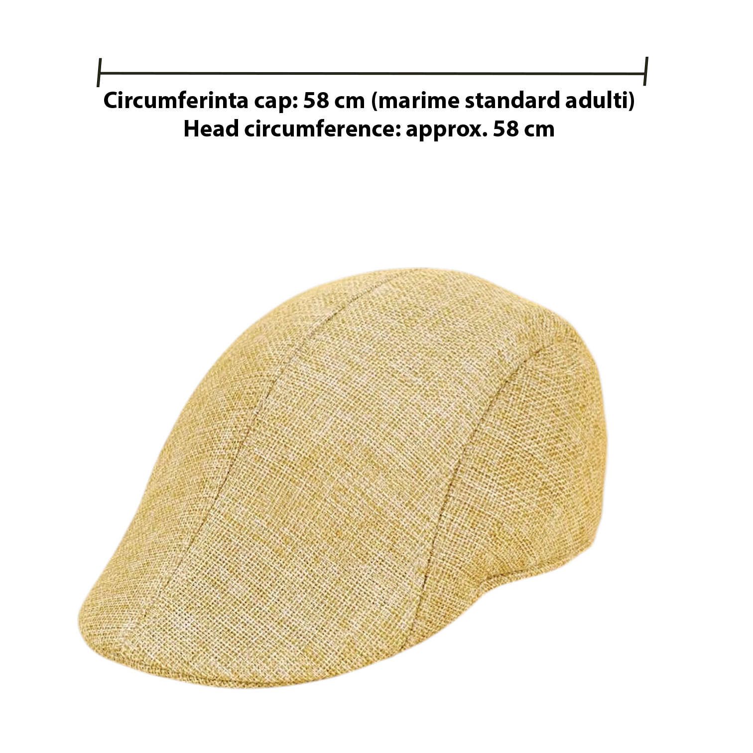 Bereta pentru barbati cu design retro-casual, ideala pentru tinute smart sau de zi cu zi in sezonul cald. Fabricata din 100% poliester, cu textura fina si respirabila, palaria ofera un plus de stil si confort in zilele de primavara sau vara. Model simplu, usor de asortat atat cu tinute casual, cat si cu outfituri clasice. Are o forma bine structurata, cozoroc discret si se aseaza bine pe cap datorita croiului fix si ergonomic. Marime universala pentru adulti, potrivita pentru circumferinta capului de aproximativ 58 cm. Materialul este subtire, se usuca rapid si permite circulatia aerului. Accesoriu ideal pentru barbati care apreciaza stilul vintage, elegant sau urban chic.
